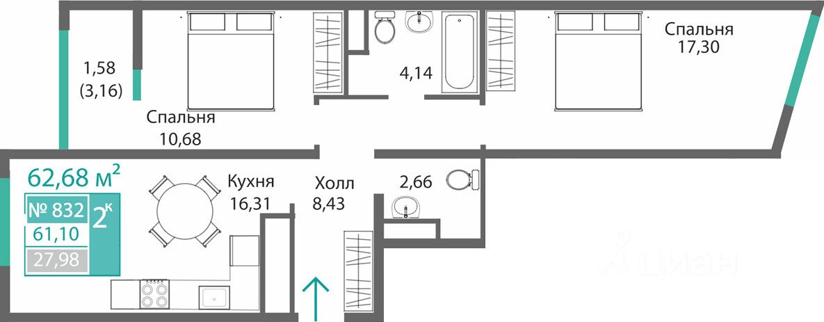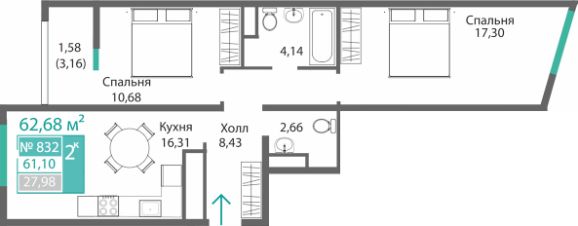Продаётся 2-комнатная квартира в строящемся доме (Этап 1), срок сдачи: I-кв. 2028, общей площадью 61.1 кв.м., на 8 этаже. Новый жилой комплекс от ГК "Монолит" по адресу: Республика Крым, Симферополь, улица Святителя Гурия