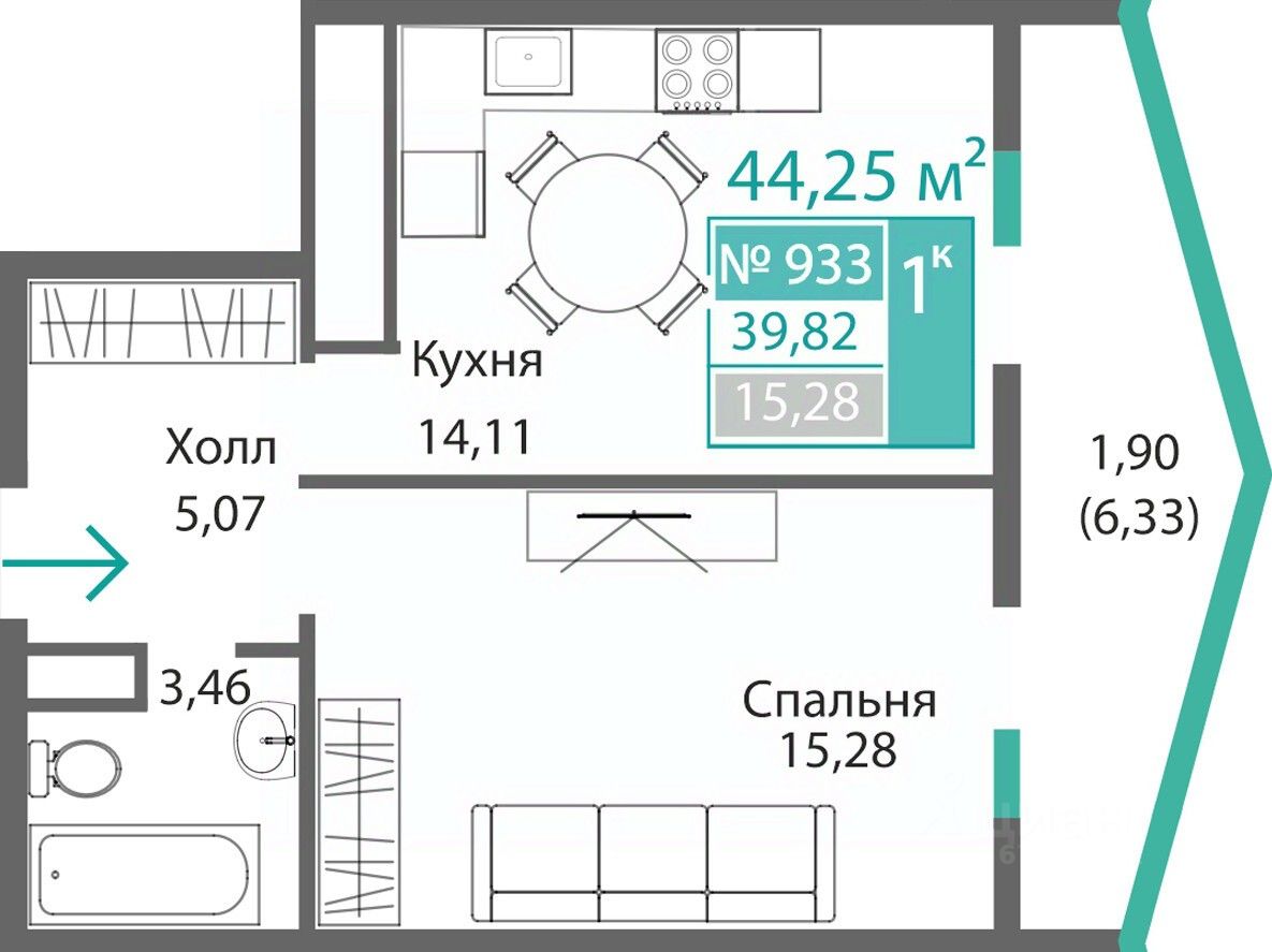Продаётся 1-комнатная квартира в строящемся доме (Этап 1), срок сдачи: I-кв. 2028, общей площадью 39.82 кв.м., на 9 этаже. Новый жилой комплекс от ГК "Монолит" по адресу: Республика Крым, Симферополь, улица Святителя Гурия