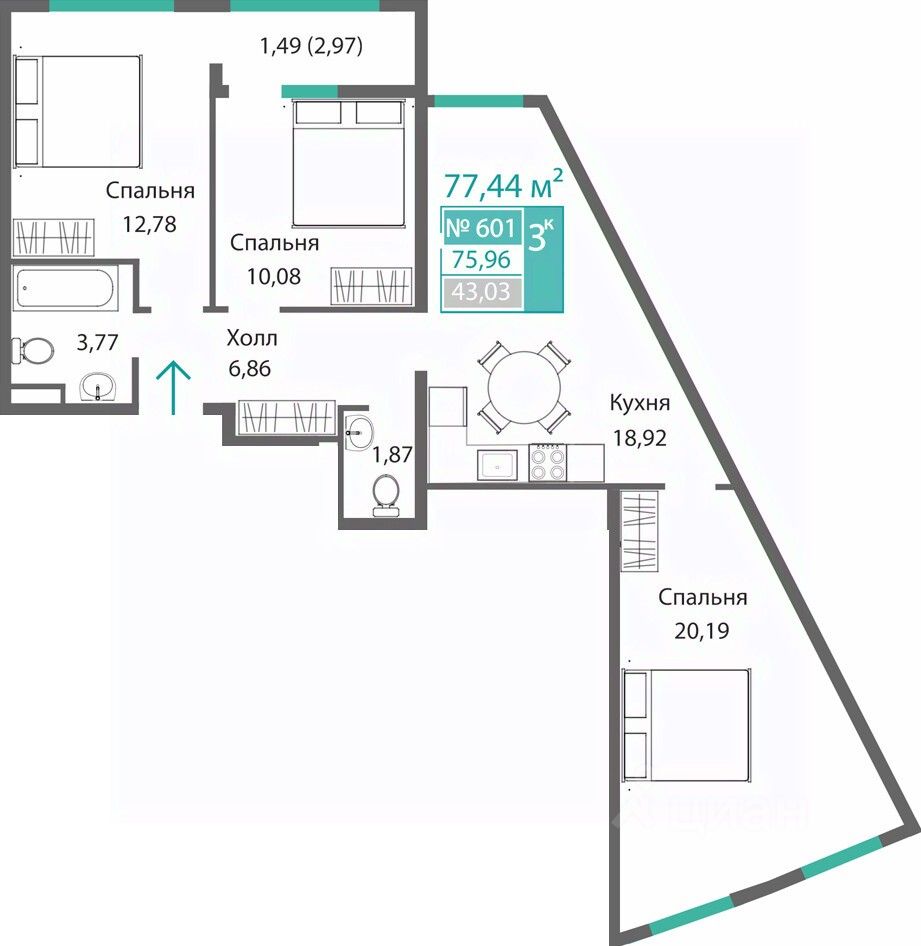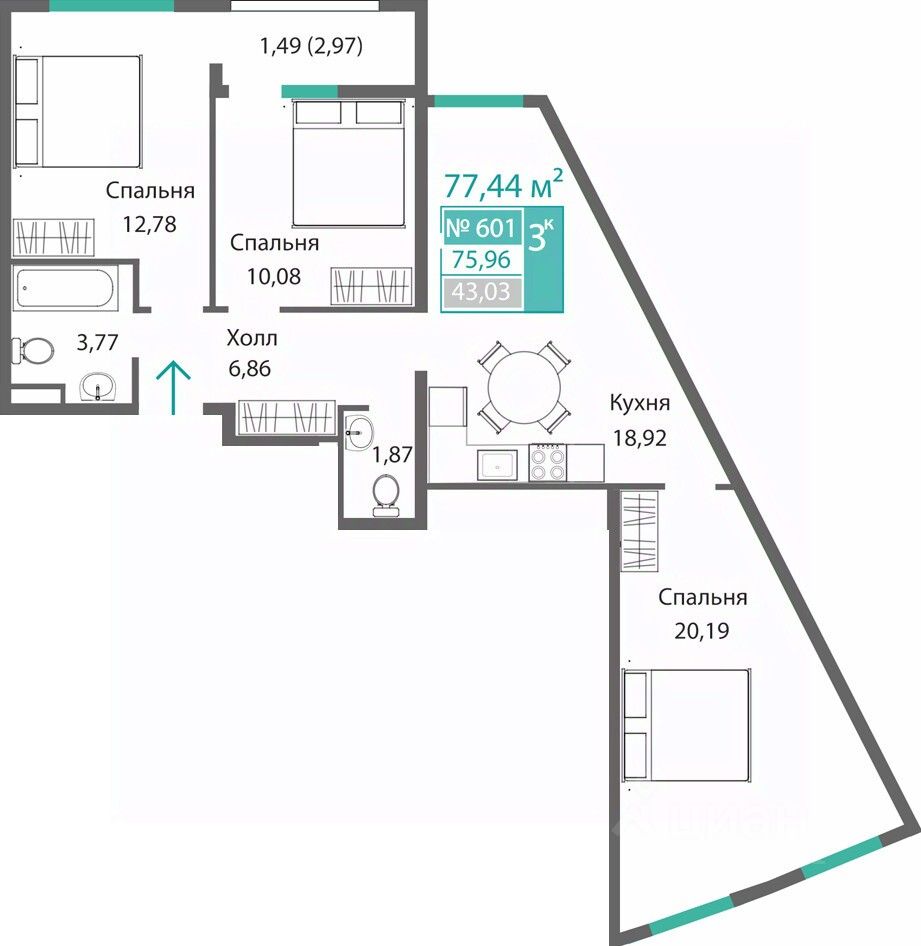 Продаётся 3-комнатная квартира в строящемся доме (Этап 1), срок сдачи: I-кв. 2028, общей площадью 75.96 кв.м., на 6 этаже. Новый жилой комплекс от ГК "Монолит" по адресу: Республика Крым, Симферополь, улица Святителя Гурия