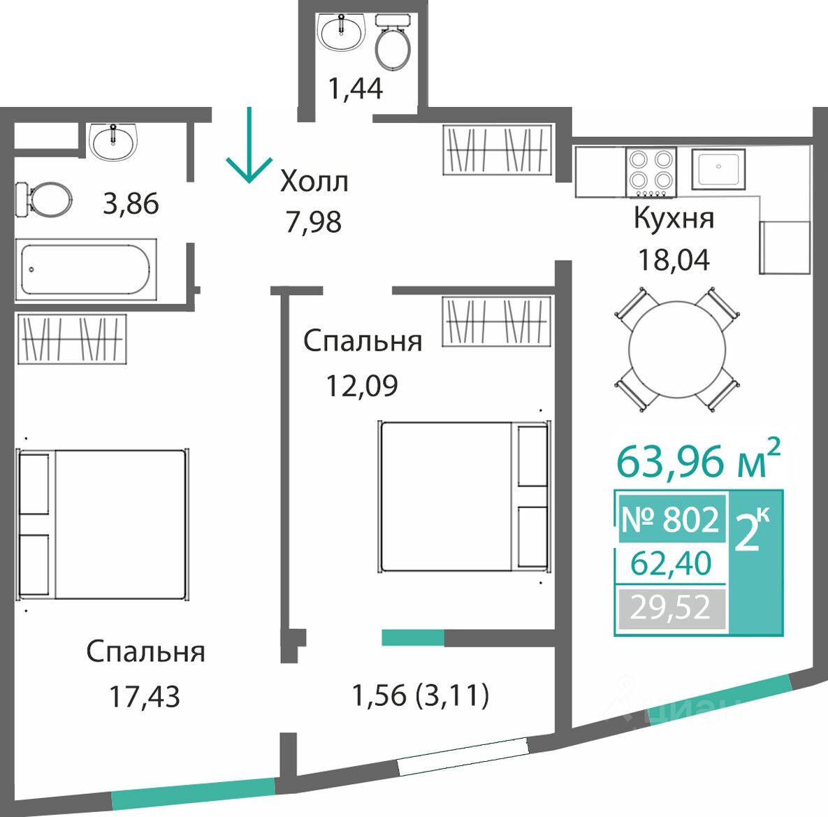 Продаётся 2-комнатная квартира в строящемся доме (Этап 1), срок сдачи: I-кв. 2028, общей площадью 62.4 кв.м., на 8 этаже. Новый жилой комплекс от ГК "Монолит" по адресу: Республика Крым, Симферополь, улица Святителя Гурия