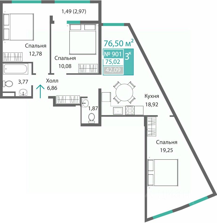 Продаётся 3-комнатная квартира в строящемся доме (Этап 1), срок сдачи: I-кв. 2028, общей площадью 75.02 кв.м., на 9 этаже. Новый жилой комплекс от ГК "Монолит" по адресу: Республика Крым, Симферополь, улица Святителя Гурия