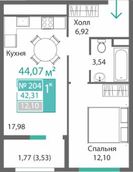 Продаётся 1-комнатная квартира в строящемся доме (Этап 1), срок сдачи: I-кв. 2028, общей площадью 42.31 кв.м., на 2 этаже. Новый жилой комплекс от ГК "Монолит" по адресу: Республика Крым, Симферополь, улица Святителя Гурия