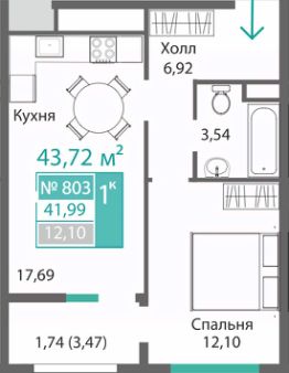Продаётся 1-комнатная квартира в строящемся доме (Этап 1), срок сдачи: I-кв. 2028, общей площадью 41.99 кв.м., на 8 этаже. Новый жилой комплекс от ГК "Монолит" по адресу: Республика Крым, Симферополь, улица Святителя Гурия