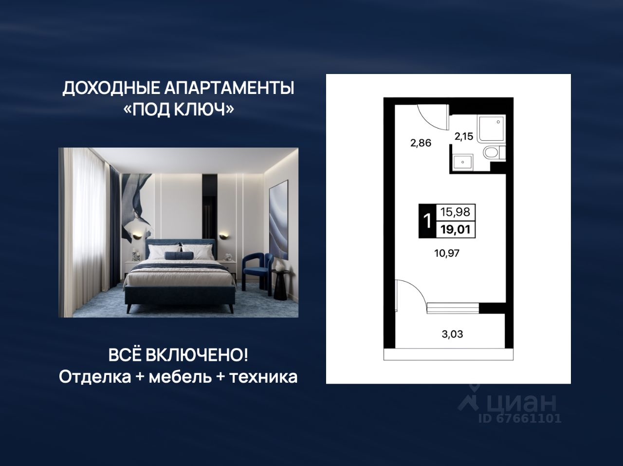 Продается апартаменты-студия, 19,01 м²
