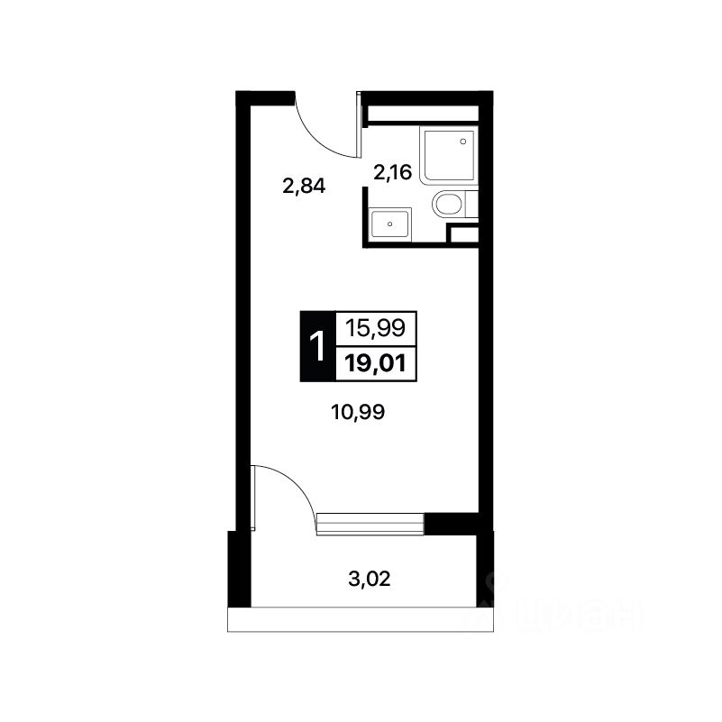 Общая площадь19,01 м²