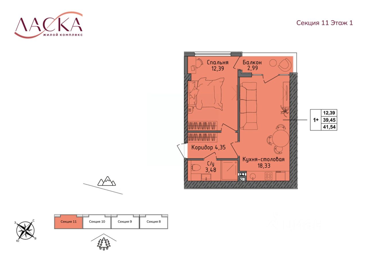 Общая площадь39,45 м²