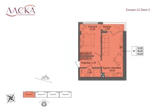 Продается 1-комн. квартира, 39,45 м²