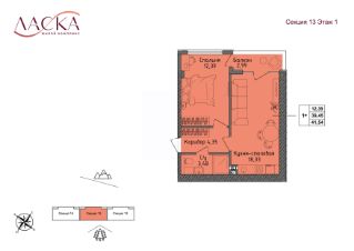 Общая площадь39,45 м²