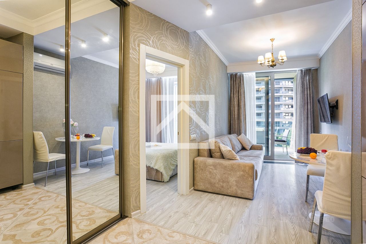 При отделке были использованы исключительно высококачественные материалы. Апартаменты полностью укомплектованы мебелью и современной бытовой техникой, что создаёт атмосферу уюта и комфорта для вашего проживания.