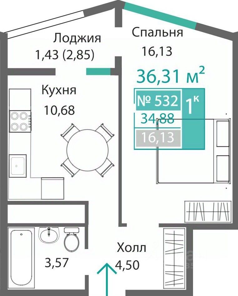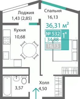 Продаётся 1-комнатная квартира в строящемся доме (Этап 4 (Секции А2, Ж2, Г4, В2, Г3)), срок сдачи: II-кв. 2028, общей площадью 36.31 кв.м., на 4 этаже. Новый жилой комплекс "Подсолнух" от застройщика "Монолит" расположен по адресу: Республика Крым, г. Симферополь, ул. Святителя Гурия