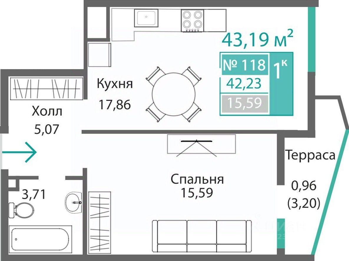 Продаётся 1-комнатная квартира в строящемся доме (Этап 4 (Секции А2, Ж2, Г4, В2, Г3)), срок сдачи: II-кв. 2028, общей площадью 43.19 кв.м., на 1 этаже. Новый жилой комплекс "Подсолнух" от застройщика "Монолит" расположен по адресу: Республика Крым, г. Симферополь, ул. Святителя Гурия