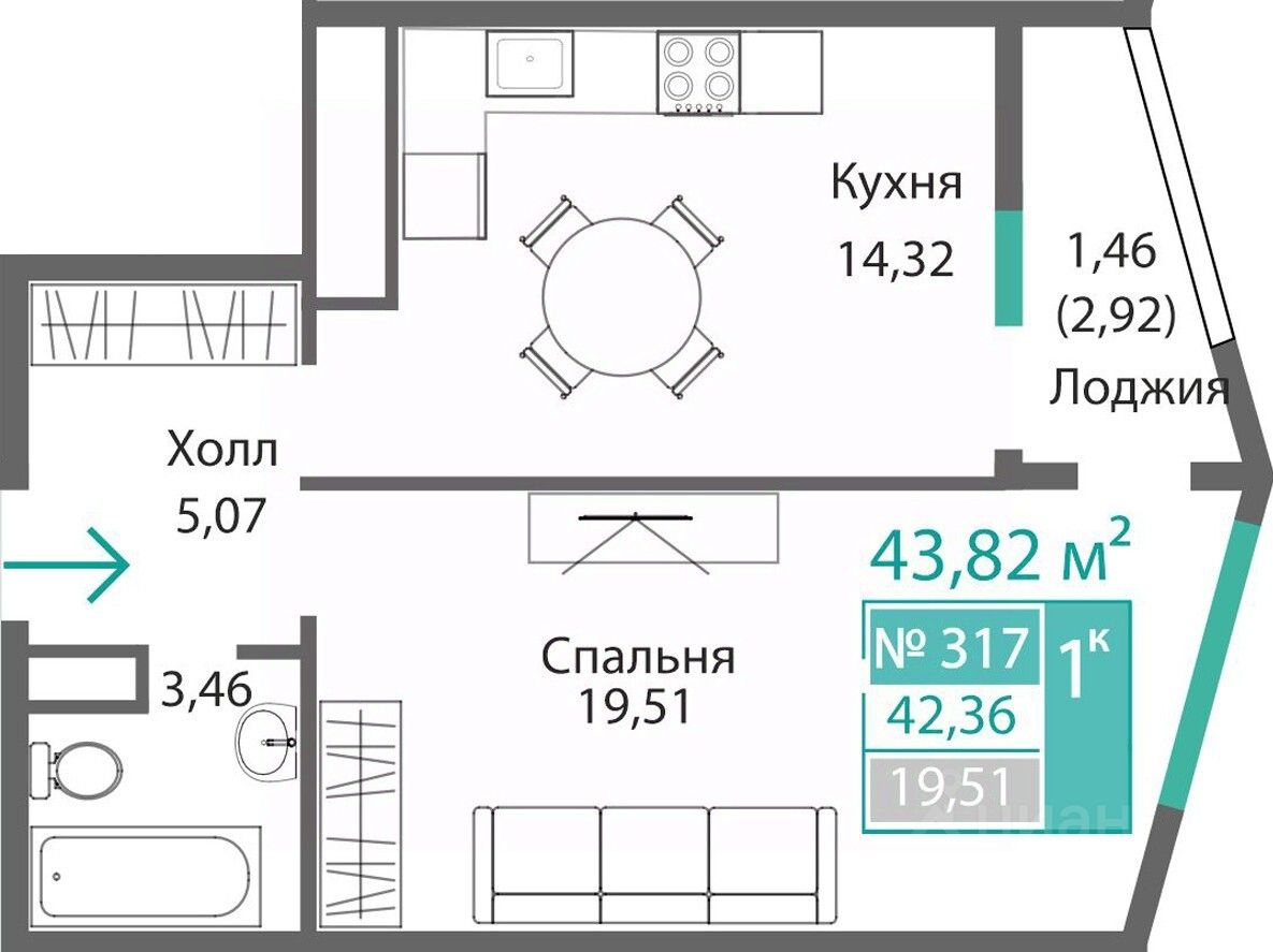 Продаётся 1-комнатная квартира в строящемся доме (Этап 4 (Секции А2, Ж2, Г4, В2, Г3)), срок сдачи: II-кв. 2028, общей площадью 43.82 кв.м., на 4 этаже. Новый жилой комплекс "Подсолнух" от застройщика "Монолит" расположен по адресу: Республика Крым, г. Симферополь, ул. Святителя Гурия