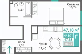 Продаётся 1-комнатная квартира в строящемся доме (Этап 4 (Секции А2, Ж2, Г4, В2, Г3)), срок сдачи: II-кв. 2028, общей площадью 47.18 кв.м., на 1 этаже. Новый жилой комплекс "Подсолнух" от застройщика "Монолит" расположен по адресу: Республика Крым, г. Симферополь, ул. Святителя Гурия