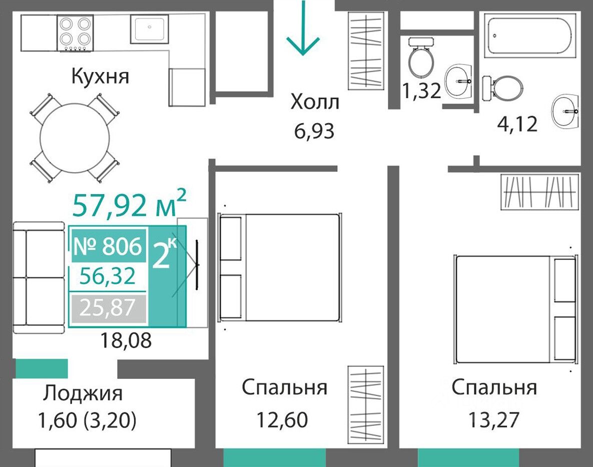 Продаётся 2-комнатная квартира в строящемся доме (Этап 4 (Секции А2, Ж2, Г4, В2, Г3)), срок сдачи: II-кв. 2028, общей площадью 57.92 кв.м., на 8 этаже. Новый жилой комплекс "Подсолнух" от застройщика "Монолит" расположен по адресу: Республика Крым, г. Симферополь, ул. Святителя Гурия
