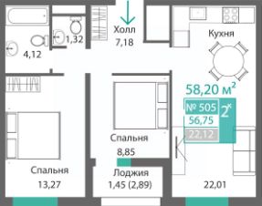 Продаётся 2-комнатная квартира в строящемся доме (Этап 4 (Секции А2, Ж2, Г4, В2, Г3)), срок сдачи: II-кв. 2028, общей площадью 58.2 кв.м., на 7 этаже. Новый жилой комплекс "Подсолнух" от застройщика "Монолит" расположен по адресу: Республика Крым, г. Симферополь, ул. Святителя Гурия