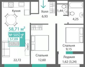 Продаётся 2-комнатная квартира в строящемся доме (Этап 4 (Секции А2, Ж2, Г4, В2, Г3)), срок сдачи: II-кв. 2028, общей площадью 58.71 кв.м., на 5 этаже. Новый жилой комплекс "Подсолнух" от застройщика "Монолит" расположен по адресу: Республика Крым, г. Симферополь, ул. Святителя Гурия