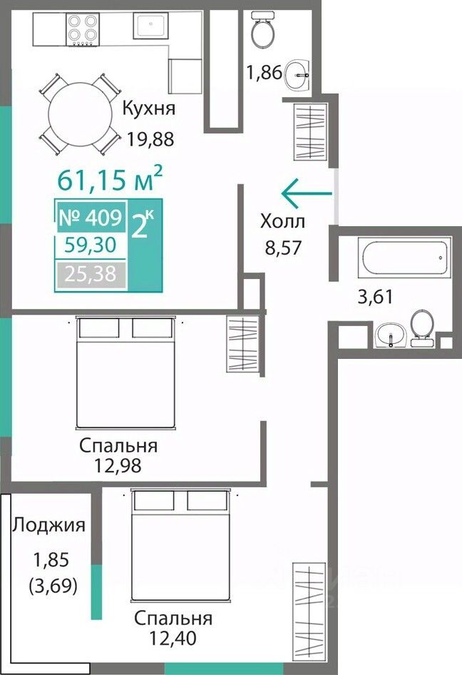 Продаётся 2-комнатная квартира в строящемся доме (Этап 4 (Секции А2, Ж2, Г4, В2, Г3)), срок сдачи: II-кв. 2028, общей площадью 61.15 кв.м., на 1 этаже. Новый жилой комплекс "Подсолнух" от застройщика "Монолит" расположен по адресу: Республика Крым, г. Симферополь, ул. Святителя Гурия