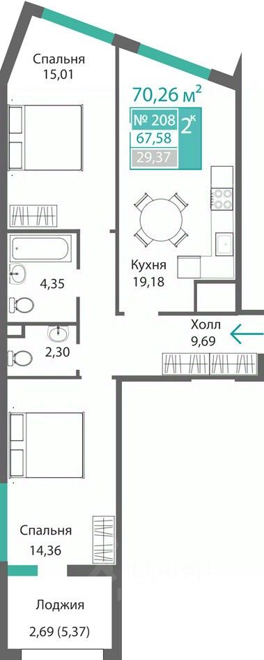 Продаётся 2-комнатная квартира в строящемся доме (Этап 4 (Секции А2, Ж2, Г4, В2, Г3)), срок сдачи: II-кв. 2028, общей площадью 67.58 кв.м., на 2 этаже. Новый жилой комплекс "Подсолнух" от застройщика "Монолит" расположен по адресу: Республика Крым, г. Симферополь, ул. Святителя Гурия