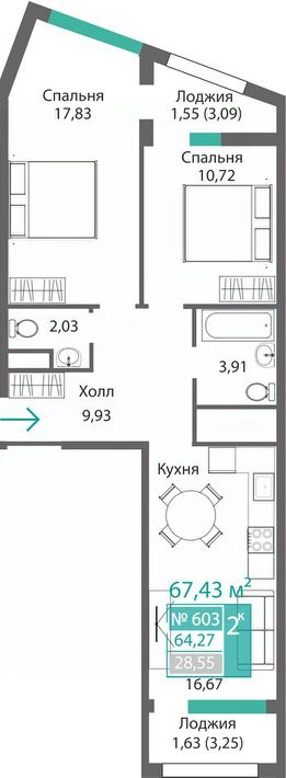 Продаётся 2-комнатная квартира в строящемся доме (Этап 4 (Секции А2, Ж2, Г4, В2, Г3)), срок сдачи: II-кв. 2028, общей площадью 64.27 кв.м., на 6 этаже. Новый жилой комплекс "Подсолнух" от застройщика "Монолит" расположен по адресу: Республика Крым, г. Симферополь, ул. Святителя Гурия