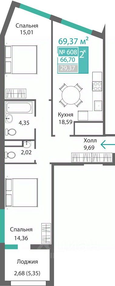 Продаётся 2-комнатная квартира в строящемся доме (Этап 4 (Секции А2, Ж2, Г4, В2, Г3)), срок сдачи: II-кв. 2028, общей площадью 66.7 кв.м., на 6 этаже. Новый жилой комплекс "Подсолнух" от застройщика "Монолит" расположен по адресу: Республика Крым, г. Симферополь, ул. Святителя Гурия