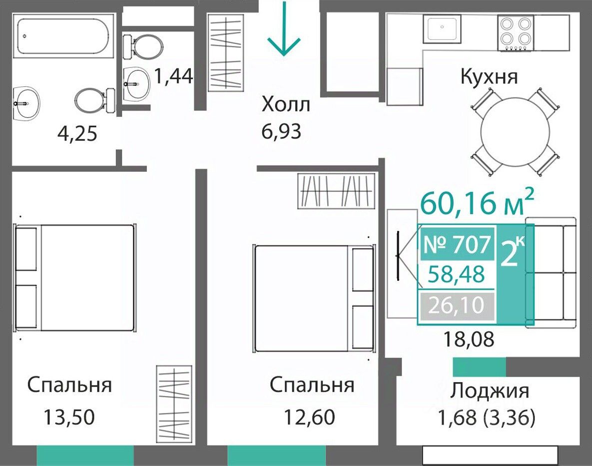 Продаётся 2-комнатная квартира в строящемся доме (Этап 4 (Секции А2, Ж2, Г4, В2, Г3)), срок сдачи: II-кв. 2028, общей площадью 58.48 кв.м., на 7 этаже. Новый жилой комплекс "Подсолнух" от застройщика "Монолит" расположен по адресу: Республика Крым, г. Симферополь, ул. Святителя Гурия