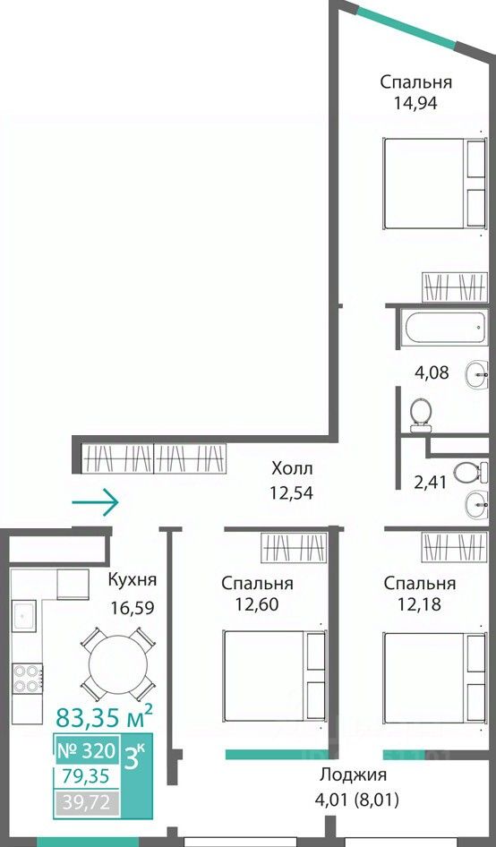 Продаётся 3-комнатная квартира в строящемся доме (Этап 4 (Секции А2, Ж2, Г4, В2, Г3)), срок сдачи: II-кв. 2028, общей площадью 79.35 кв.м., на 3 этаже. Новый жилой комплекс "Подсолнух" от застройщика "Монолит" расположен по адресу: Республика Крым, г. Симферополь, ул. Святителя Гурия