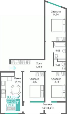 Продаётся 3-комнатная квартира в строящемся доме (Этап 4 (Секции А2, Ж2, Г4, В2, Г3)), срок сдачи: II-кв. 2028, общей площадью 79.35 кв.м., на 4 этаже. Новый жилой комплекс "Подсолнух" от застройщика "Монолит" расположен по адресу: Республика Крым, г. Симферополь, ул. Святителя Гурия
