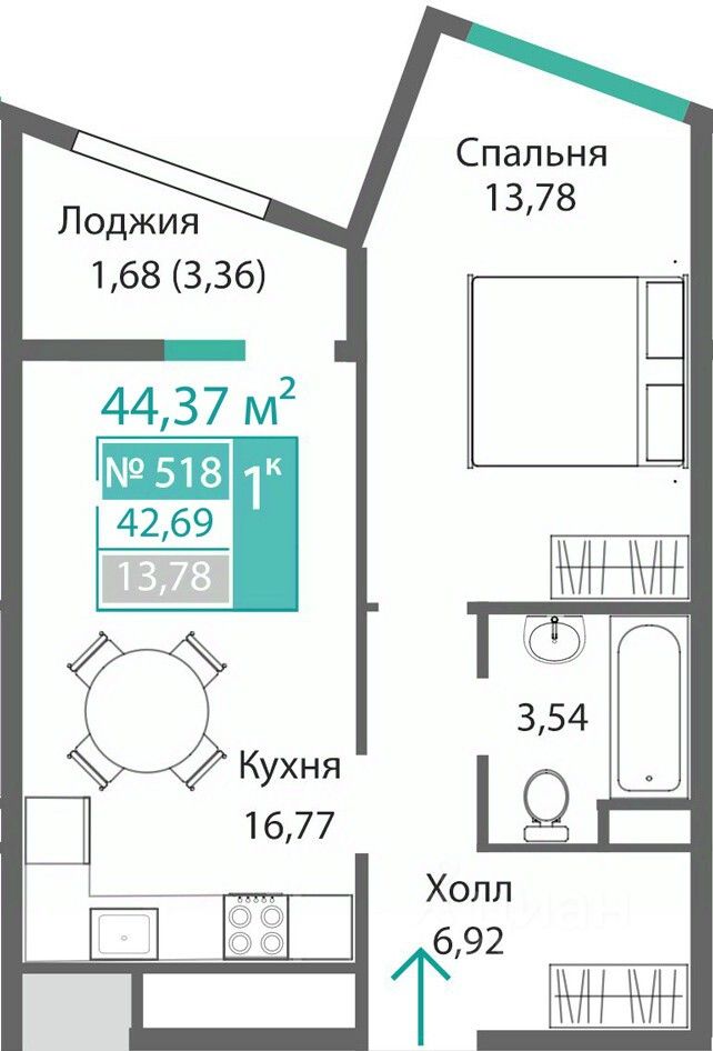 Продаётся 1-комнатная квартира в строящемся доме (Этап 4 (Секции А2, Ж2, Г4, В2, Г3)), срок сдачи: II-кв. 2028, общей площадью 42.69 кв.м., на 5 этаже. Новый жилой комплекс "Подсолнух" от застройщика "Монолит" расположен по адресу: Республика Крым, г. Симферополь, ул. Святителя Гурия