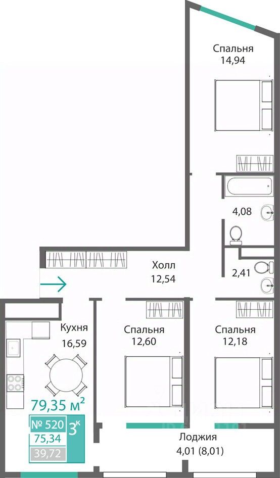 Продаётся 3-комнатная квартира в строящемся доме (Этап 4 (Секции А2, Ж2, Г4, В2, Г3)), срок сдачи: II-кв. 2028, общей площадью 79.35 кв.м., на 5 этаже. Новый жилой комплекс "Подсолнух" от застройщика "Монолит" расположен по адресу: Республика Крым, г. Симферополь, ул. Святителя Гурия
