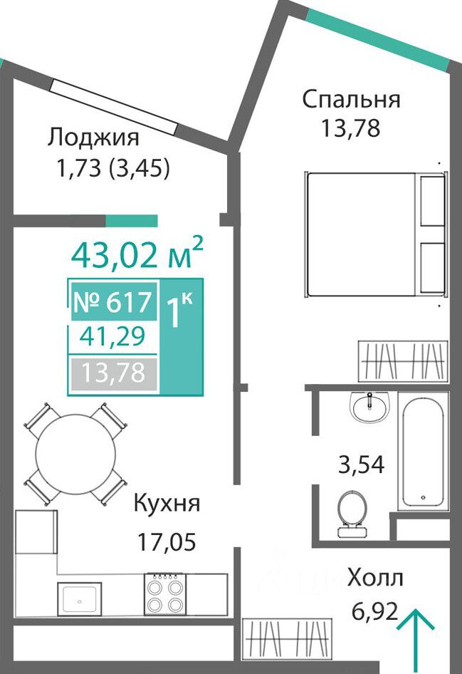 43,02 м²
