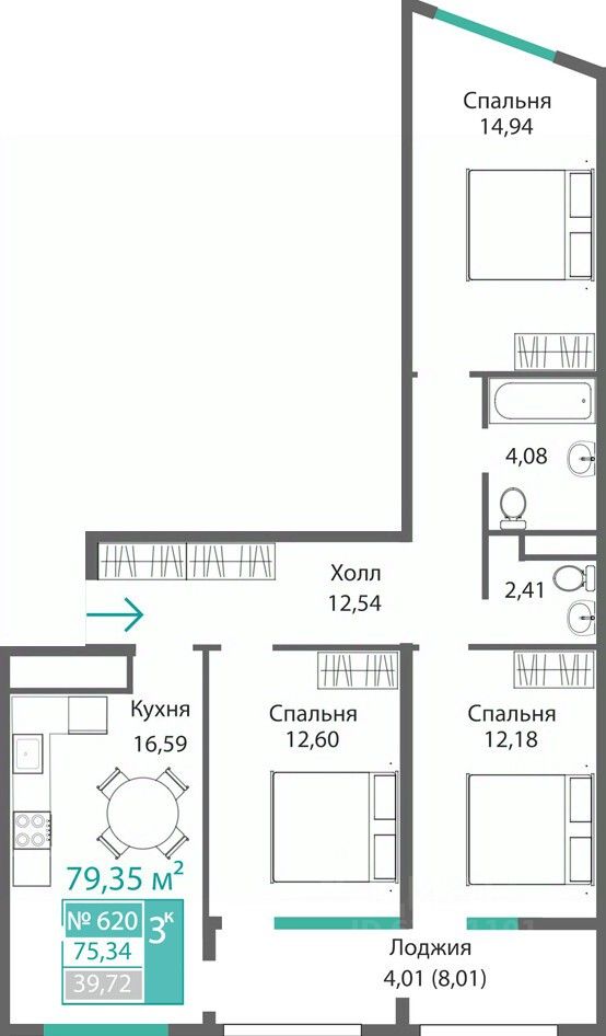 Продаётся 3-комнатная квартира в строящемся доме (Этап 4 (Секции А2, Ж2, Г4, В2, Г3)), срок сдачи: II-кв. 2028, общей площадью 79.35 кв.м., на 6 этаже. Новый жилой комплекс "Подсолнух" от застройщика "Монолит" расположен по адресу: Республика Крым, г. Симферополь, ул. Святителя Гурия