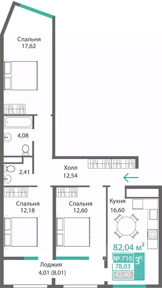 Продаётся 3-комнатная квартира в строящемся доме (Этап 4 (Секции А2, Ж2, Г4, В2, Г3)), срок сдачи: II-кв. 2028, общей площадью 82.04 кв.м., на 7 этаже. Новый жилой комплекс "Подсолнух" от застройщика "Монолит" расположен по адресу: Республика Крым, г. Симферополь, ул. Святителя Гурия