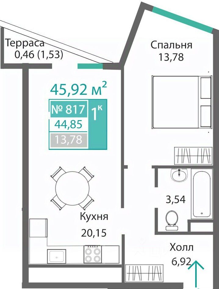 Продаётся 1-комнатная квартира в строящемся доме (Этап 4 (Секции А2, Ж2, Г4, В2, Г3)), срок сдачи: II-кв. 2028, общей площадью 44.85 кв.м., на 8 этаже. Новый жилой комплекс "Подсолнух" от застройщика "Монолит" расположен по адресу: Республика Крым, г. Симферополь, ул. Святителя Гурия