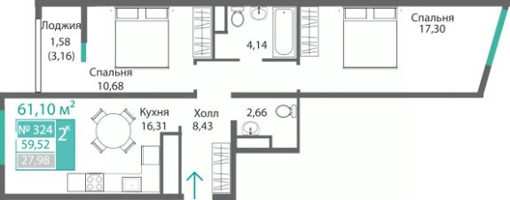 61,1 м²