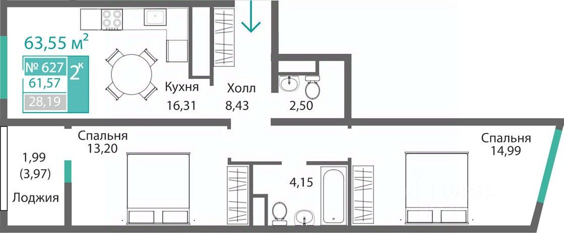 Продаётся 2-комнатная квартира в строящемся доме (Этап 4 (Секции А2, Ж2, Г4, В2, Г3)), срок сдачи: II-кв. 2028, общей площадью 61.57 кв.м., на 6 этаже. Новый жилой комплекс "Подсолнух" от застройщика "Монолит" расположен по адресу: Республика Крым, г. Симферополь, ул. Святителя Гурия