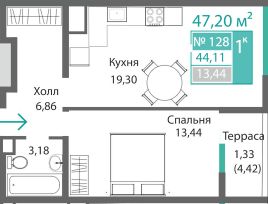 44,11 м²