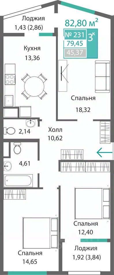 Продаётся 3-комнатная квартира в строящемся доме (Этап 4 (Секции А2, Ж2, Г4, В2, Г3)), срок сдачи: II-кв. 2028, общей площадью 79.45 кв.м., на 2 этаже. Новый жилой комплекс "Подсолнух" от застройщика "Монолит" расположен по адресу: Республика Крым, г. Симферополь, ул. Святителя Гурия