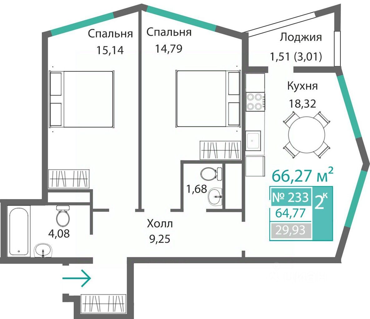 Продаётся 2-комнатная квартира в строящемся доме (Этап 4 (Секции А2, Ж2, Г4, В2, Г3)), срок сдачи: II-кв. 2028, общей площадью 64.77 кв.м., на 2 этаже. Новый жилой комплекс "Подсолнух" от застройщика "Монолит" расположен по адресу: Республика Крым, г. Симферополь, ул. Святителя Гурия