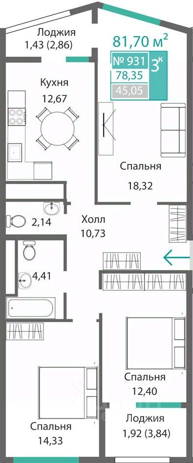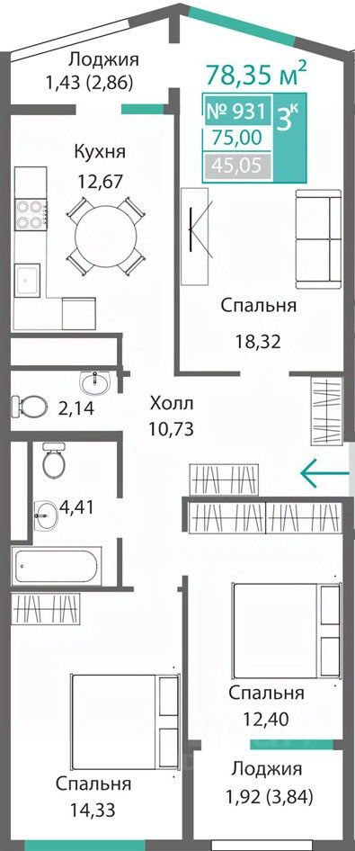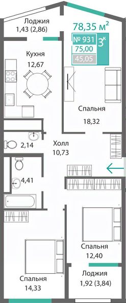 Продаётся 3-комнатная квартира в строящемся доме (Этап 4 (Секции А2, Ж2, Г4, В2, Г3)), срок сдачи: II-кв. 2028, общей площадью 78.35 кв.м., на 9 этаже. Новый жилой комплекс "Подсолнух" от застройщика "Монолит" расположен по адресу: Республика Крым, г. Симферополь, ул. Святителя Гурия