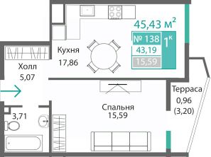 Продаётся 1-комнатная квартира в строящемся доме (Этап 4 (Секции А2, Ж2, Г4, В2, Г3)), срок сдачи: II-кв. 2028, общей площадью 43.19 кв.м., на 1 этаже. Новый жилой комплекс "Подсолнух" от застройщика "Монолит" расположен по адресу: Республика Крым, г. Симферополь, ул. Святителя Гурия