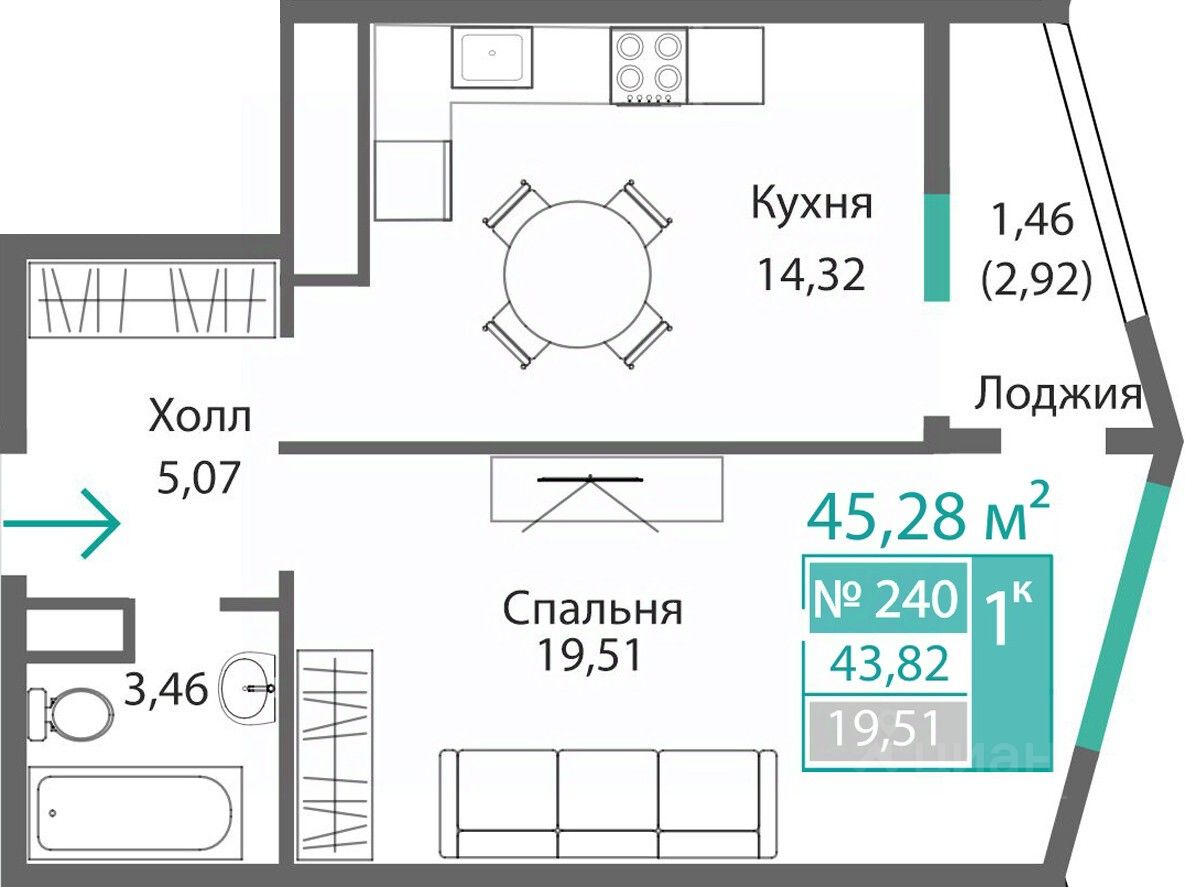 Продаётся 1-комнатная квартира в строящемся доме (Этап 4 (Секции А2, Ж2, Г4, В2, Г3)), срок сдачи: II-кв. 2028, общей площадью 43.82 кв.м., на 2 этаже. Новый жилой комплекс "Подсолнух" от застройщика "Монолит" расположен по адресу: Республика Крым, г. Симферополь, ул. Святителя Гурия