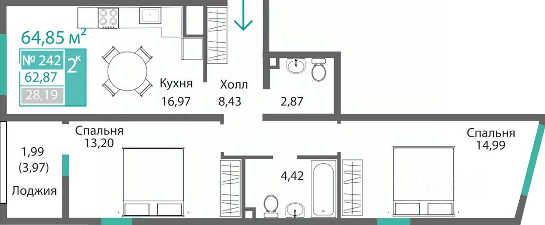Продаётся 2-комнатная квартира в строящемся доме (Этап 4 (Секции А2, Ж2, Г4, В2, Г3)), срок сдачи: II-кв. 2028, общей площадью 62.87 кв.м., на 2 этаже. Новый жилой комплекс "Подсолнух" от застройщика "Монолит" расположен по адресу: Республика Крым, г. Симферополь, ул. Святителя Гурия