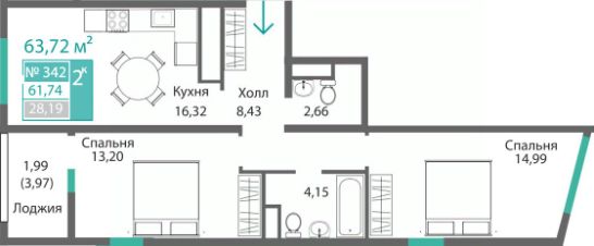 Продаётся 2-комнатная квартира в строящемся доме (Этап 4 (Секции А2, Ж2, Г4, В2, Г3)), срок сдачи: II-кв. 2028, общей площадью 61.74 кв.м., на 3 этаже. Новый жилой комплекс "Подсолнух" от застройщика "Монолит" расположен по адресу: Республика Крым, г. Симферополь, ул. Святителя Гурия