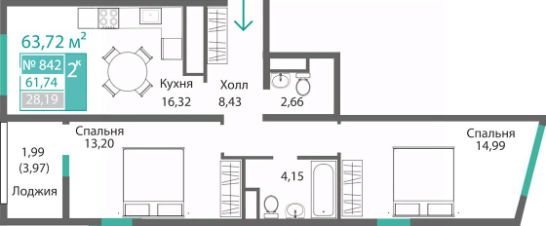 Продаётся 2-комнатная квартира в строящемся доме (Этап 4 (Секции А2, Ж2, Г4, В2, Г3)), срок сдачи: II-кв. 2028, общей площадью 61.74 кв.м., на 8 этаже. Новый жилой комплекс "Подсолнух" от застройщика "Монолит" расположен по адресу: Республика Крым, г. Симферополь, ул. Святителя Гурия