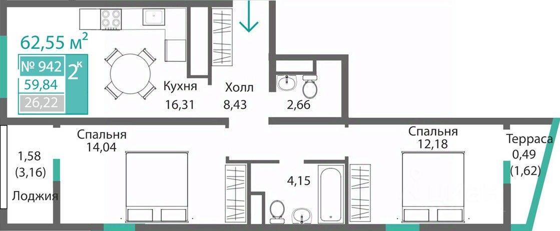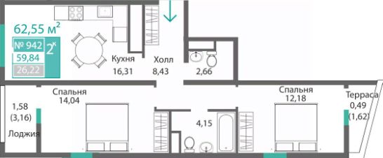 Продаётся 2-комнатная квартира в строящемся доме (Этап 4 (Секции А2, Ж2, Г4, В2, Г3)), срок сдачи: II-кв. 2028, общей площадью 59.84 кв.м., на 9 этаже. Новый жилой комплекс "Подсолнух" от застройщика "Монолит" расположен по адресу: Республика Крым, г. Симферополь, ул. Святителя Гурия