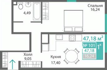 Продаётся 1-комнатная квартира в строящемся доме (Этап 4 (Секции А2, Ж2, Г4, В2, Г3)), срок сдачи: II-кв. 2028, общей площадью 47.18 кв.м., на 1 этаже. Новый жилой комплекс "Подсолнух" от застройщика "Монолит" расположен по адресу: Республика Крым, г. Симферополь, ул. Святителя Гурия