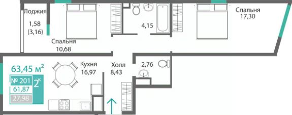 Продаётся 2-комнатная квартира в строящемся доме (Этап 4 (Секции А2, Ж2, Г4, В2, Г3)), срок сдачи: II-кв. 2028, общей площадью 61.87 кв.м., на 2 этаже. Новый жилой комплекс "Подсолнух" от застройщика "Монолит" расположен по адресу: Республика Крым, г. Симферополь, ул. Святителя Гурия