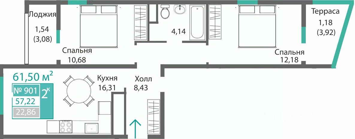 57,22 м²