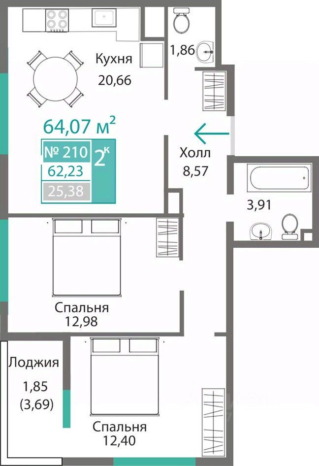 62,23 м²