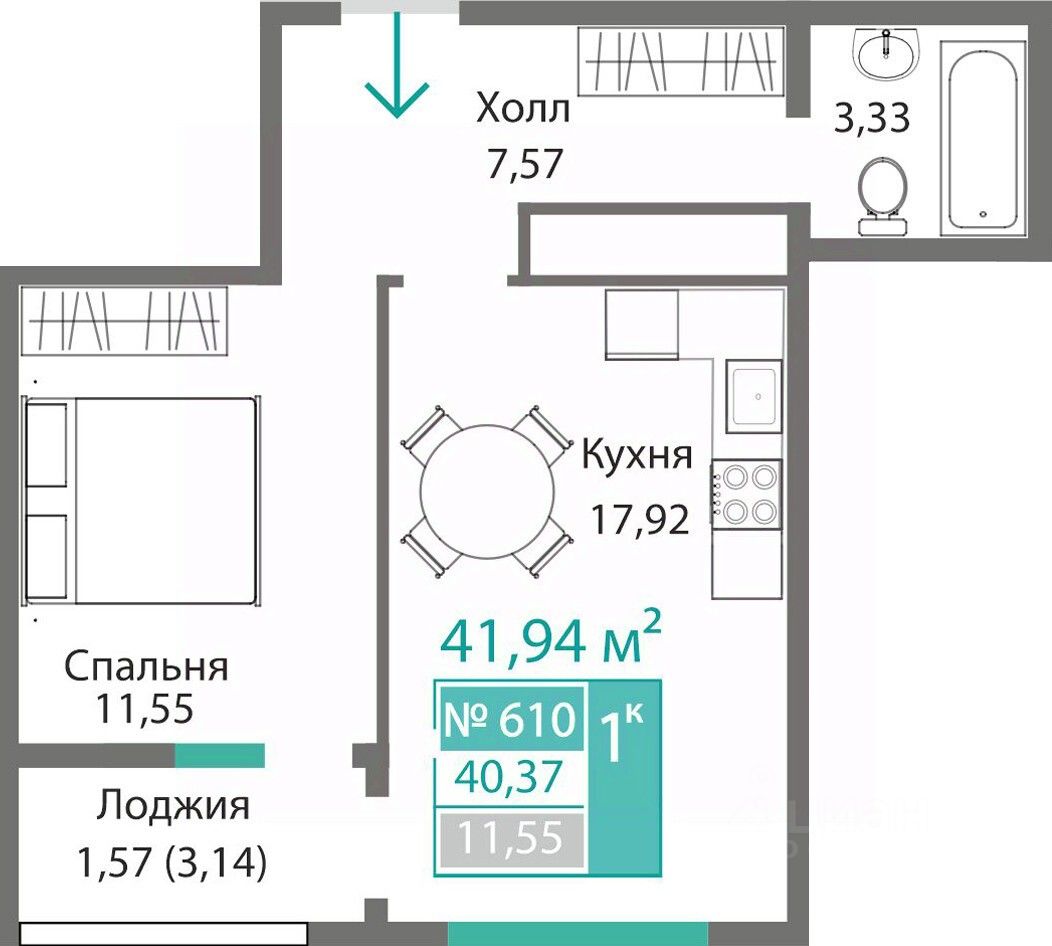 Продаётся 1-комнатная квартира в строящемся доме (Этап 4 (Секции А2, Ж2, Г4, В2, Г3)), срок сдачи: II-кв. 2028, общей площадью 41.94 кв.м., на 6 этаже. Новый жилой комплекс "Подсолнух" от застройщика "Монолит" расположен по адресу: Республика Крым, г. Симферополь, ул. Святителя Гурия